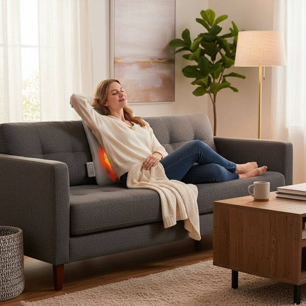 Profitez d'un massage relaxant à la maison. Notre coussin de massage fonctionne grâce à des techniques de pétrissage adaptées pour un soulagement des tensions.