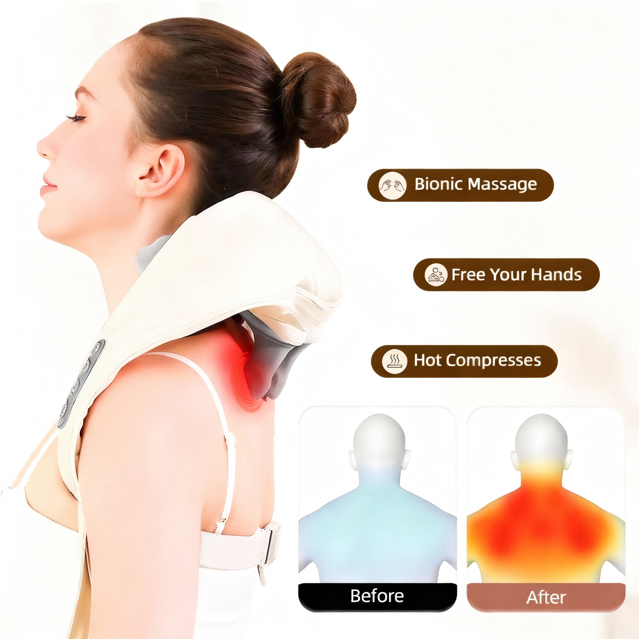 • Massage Shiatsu Profond : Reproduit les techniques de massage traditionnelles pour un soulagement efficace.